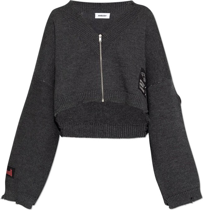 Ambush Logo-Patch Cropped Distressed Jumper